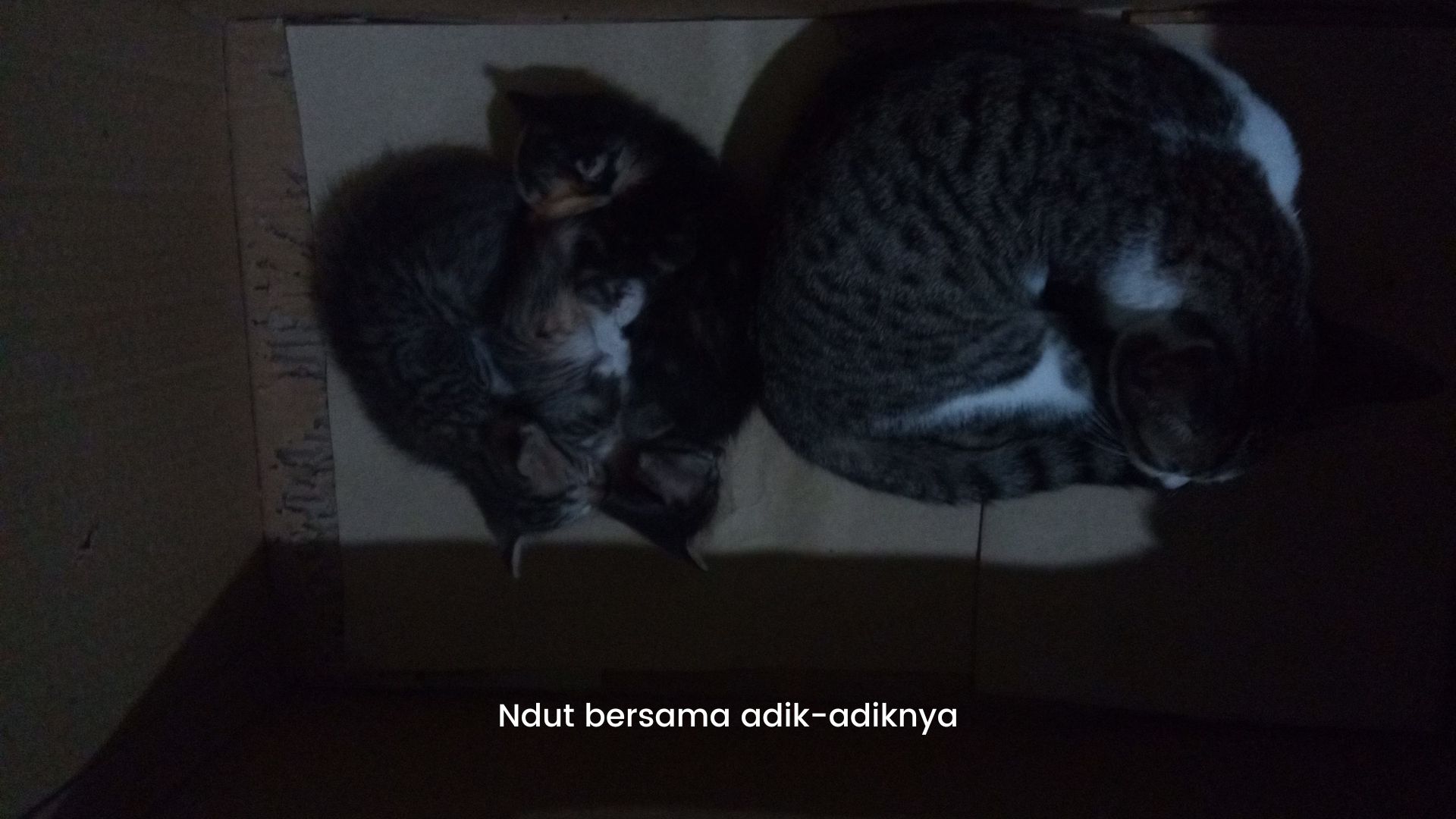 Sebagai konteks, Ndut adalah satu-satunya anakan kucing yang selamat dari badai virus Calici di rumah. Induk dan saudara-saudaranya sudah terlebih dahulu mati.